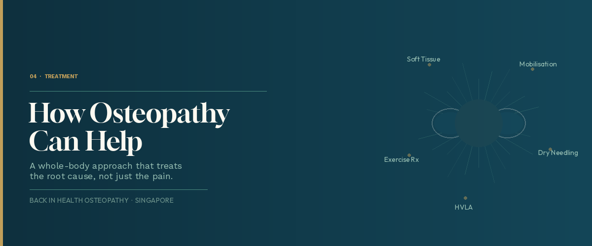 Your first session at Back in Health Osteopathy Singapore will involve a thorough history and physical assessment. We'll ask about your symptoms, your work setup, your exercise habits, and any relevant medical history. We'll then assess your posture, spinal mobility, muscle strength, and neurological signs to build a clear picture of what's going on.